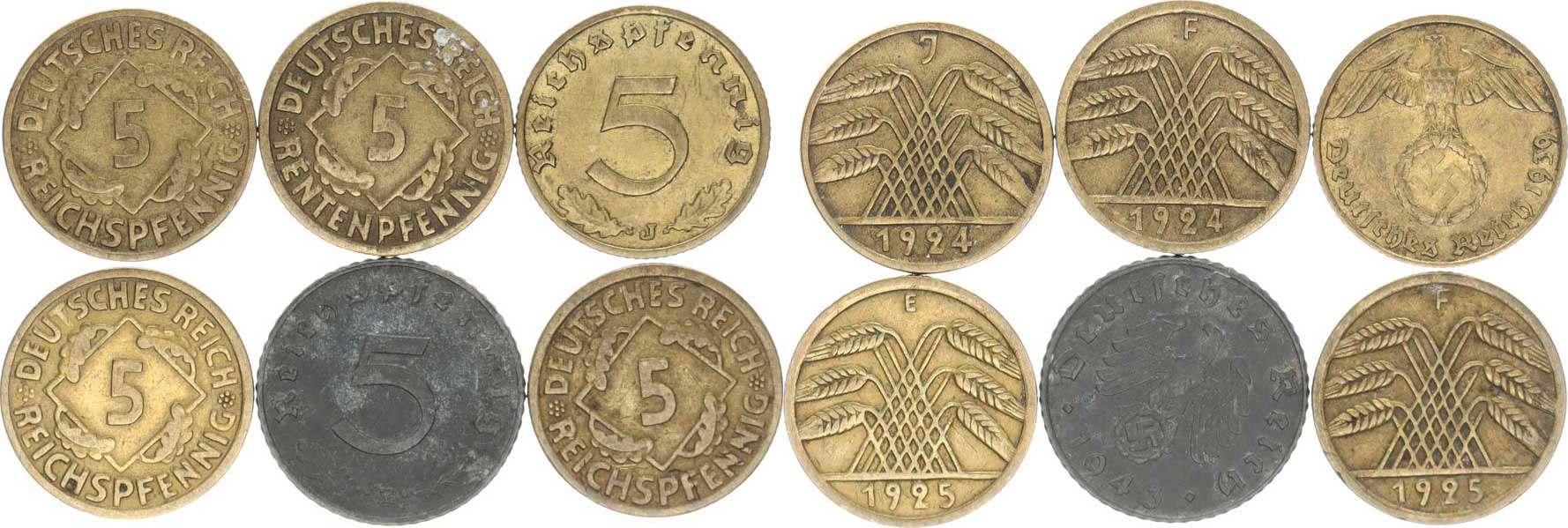 5 Rntpf. 1924 F; +5 Rpf. 1924 J, 1925 E, F, 1939 J, 1943 E 6 k s