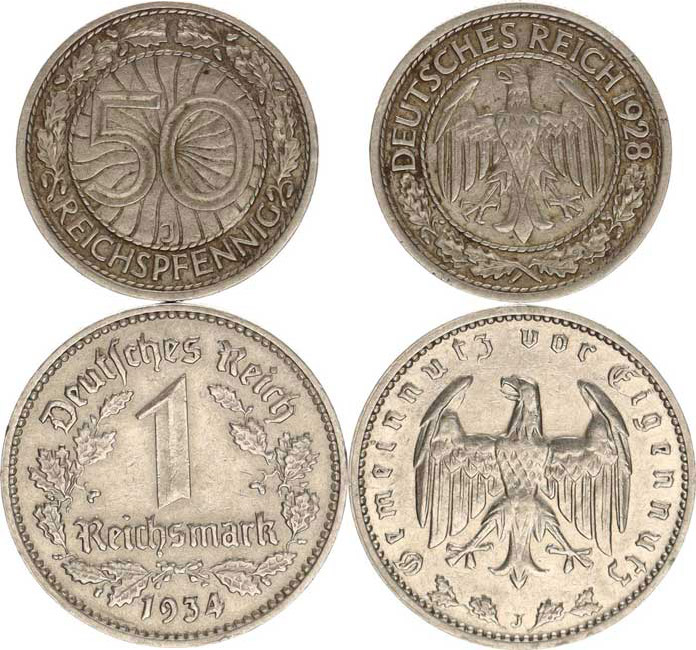 1 RM 1934 J; +50 Rpf. 1928 J 2 ks