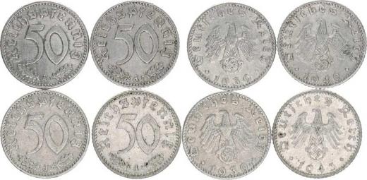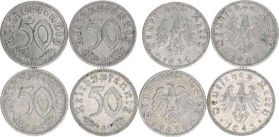 50 Rpf. 1939 A, J, 1940 A, 1943 A - vše Al KM 96 4 ks