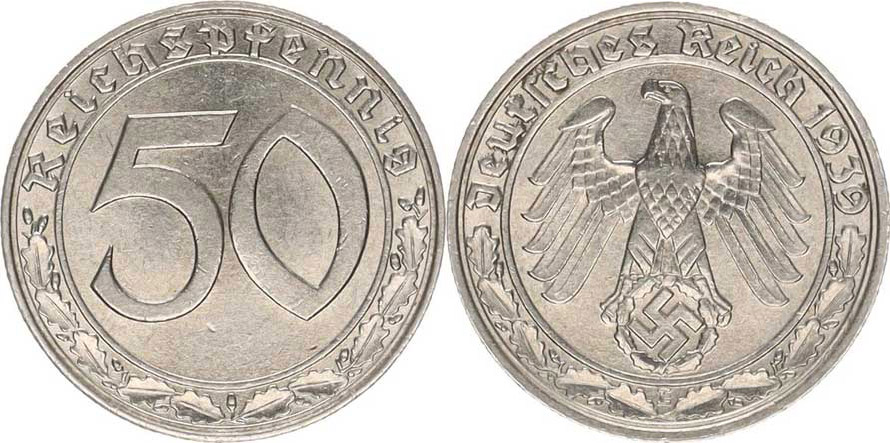 50 Rpf. 1939 E - Ni KM 95 "R"_tém.