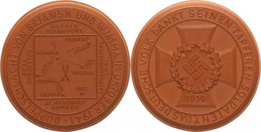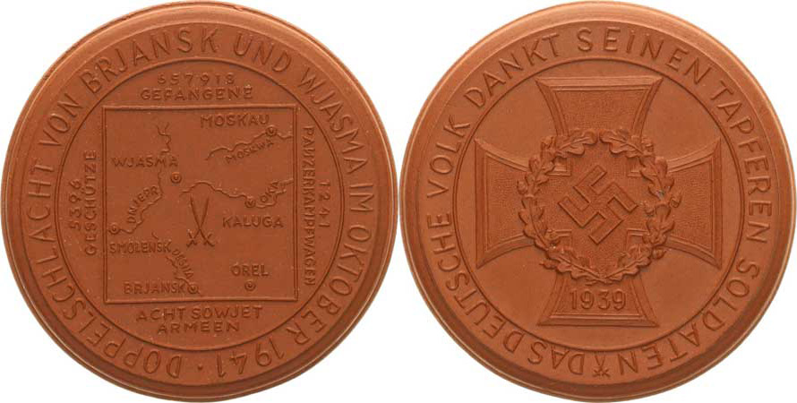 Bitva u Brjanska a Vjazmy 1941, Mapa bojiště, opis / Železný kříž , opis míšeňský hnědý porcelán 50 mm Scheuch 1875a "R"