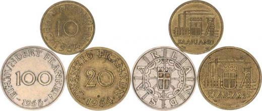 10, +20 Franken 1954; +100 Franken 1955 3 ks "R"