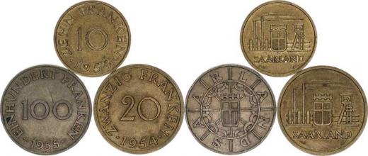 10, +20 Franken 1954; +100 Franken 1955 3 ks "R"