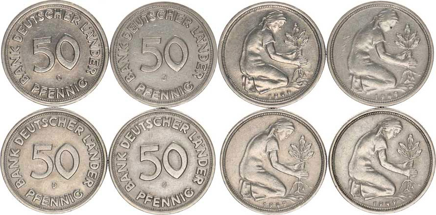 50 Pfennig 1949 D, F, G, J - Bank Deutscher Länder KM 104 4 ks