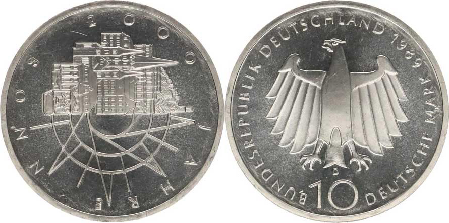 10 DM 1989 D - 2000 let města Bonn KM 172
