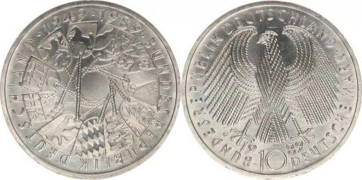 10 DM 1989 G - 40.výročí republiky Ag 625 15,5 g KM 173