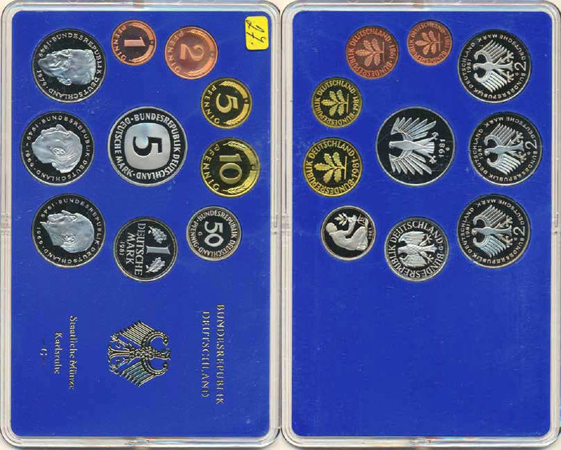 Ročníková sada mincí 1981 minc. G (1, 2, 5, 10, 50 Pf., 1, 5, 2 DM - Adenauer, Heuss, Schumacher) 10 ks v orig. plexi balení mincovny PS 62