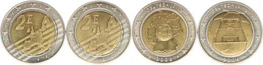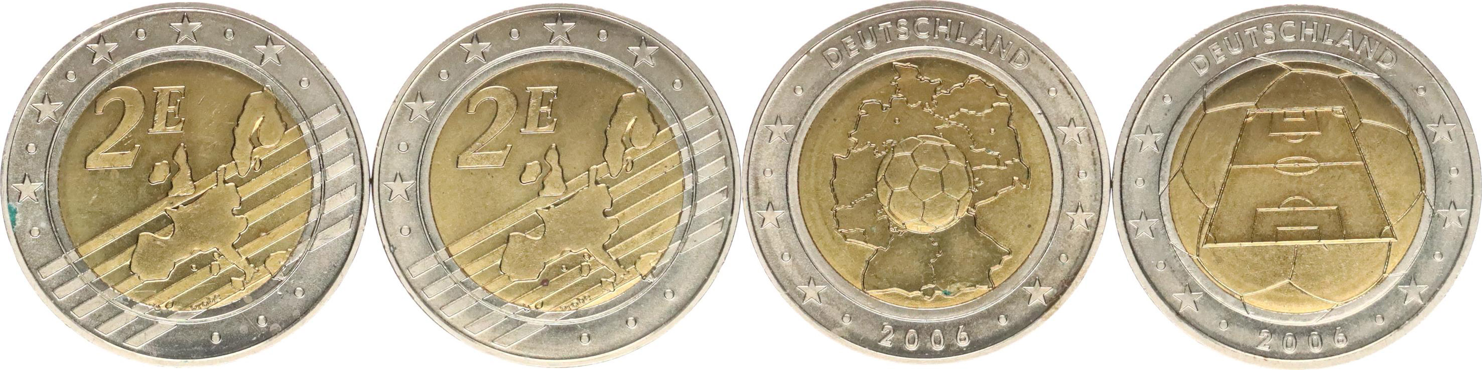 2 Euro 2006 - MS ve fotbale, stadion bimetal 30 mm 2 Euro 2006 - MS ve fotbale, mapa Německa s míčem bimetal 30 m m 2 ks - medailové ražby