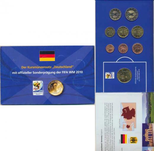 Mincovní, sběratelská sada ( 1, 2, 5, 10, 20, 50 Cent, 1, 2 Euro -různé ročníky +bronz. oficiální medaile FIFA WM 2010 9 ks orig. balení