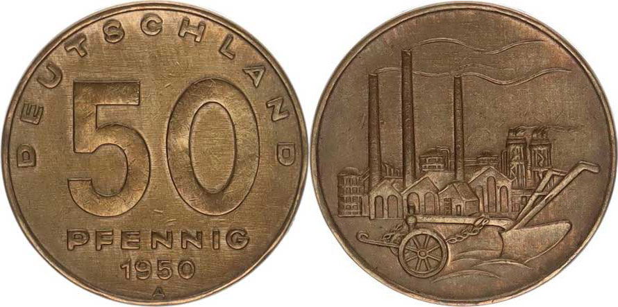 50 Pfennig 1950 A - bronz KM 4 "R"