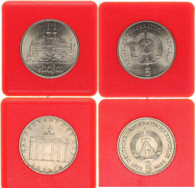 5 M 1971 A - Braniborská brána KM 29 +certifikát 5 M 1972 A - Míšeň KM 37 +certifikát 2 ks