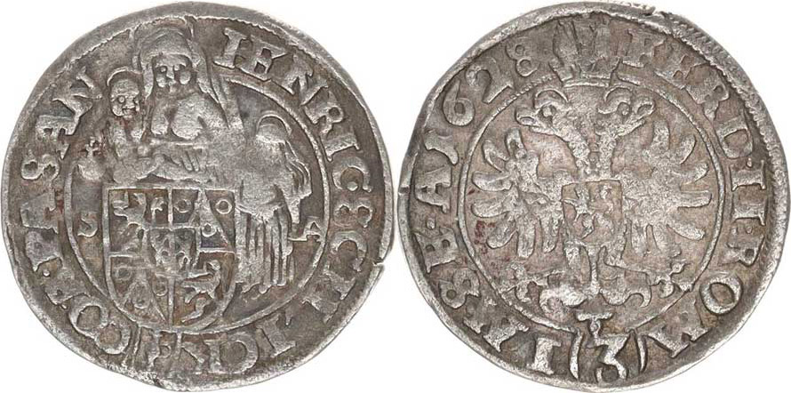 3 kr. 1628 SA - pohár, s tit. Ferdinanda II.