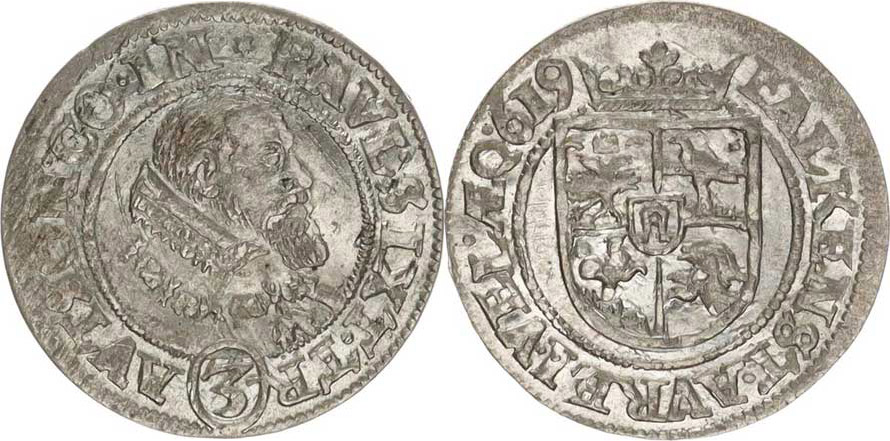 3 kr. 1619, Vídeň Sa.2113; Pol. 207 1,597 g
