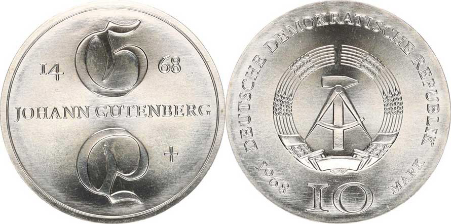 10 M 1968 - Johann Gutenberg KM 20 "R"