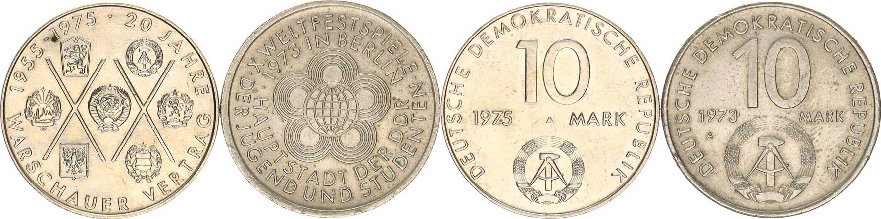 10 M 1973 A - Festival mládeže KM 44 10 M 1975 A - 20. výročí Varšavské smlouvy KM 58 2 ks