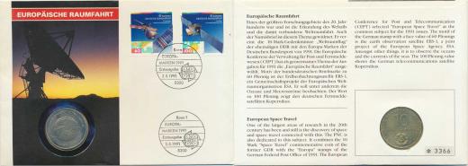 10 M 1978 A - Orbitální let SSSR-NDR KM 70 adjustace jak o mincovní dopis v barevné obálce s popisem, +dvě známky 60 +100 Pf. a dvě příležitostní razítka 2.5. 1991 pošta Bonn 1 obálka číslo *3366 mince 0/0