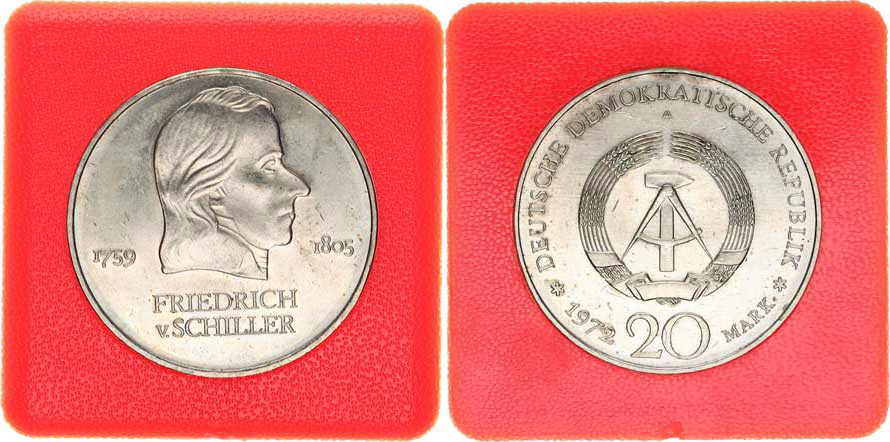 20 M 1972 A - Friedrich v.Schiller KM 40 +certifikát