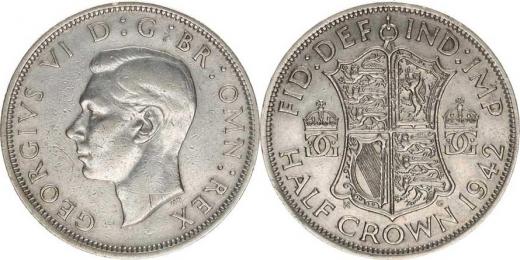 1/2 Crown 1942 KM 856; Sp 4080 Ag 500 14,14 g