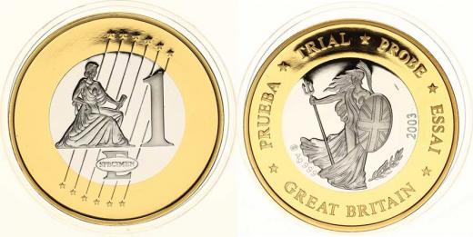 1 Euro 2003 - stoj. Britannia s trojzubcem "SPECIMEN" bimetal