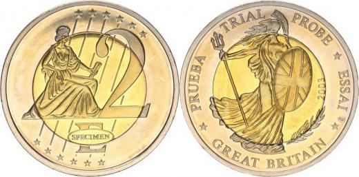 2 Euro 2003 - stoj. Britannia s trojzubcem "SPECIMEN" bimetal kapsle