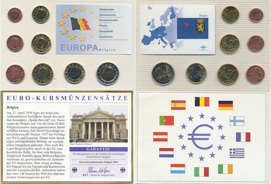 Ročníková sada EURO mincí 2004 (1, 2, 5, 10, 20, 50 Cents, 1, 2 E uro) 8 ks adjustace +certifikát BTN
