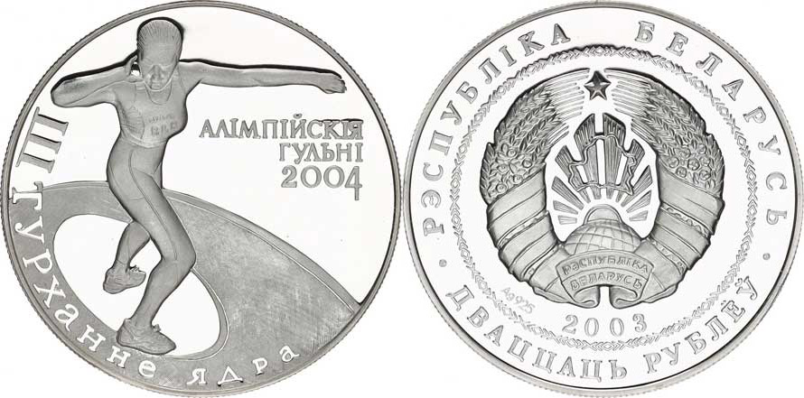 20 Rubl 2003 - OH Atény 2004, vrh koulí KM 149 /pouze 25 000 ks/ Ag 925 28,28 g kapsle