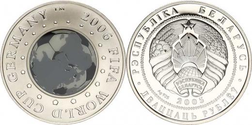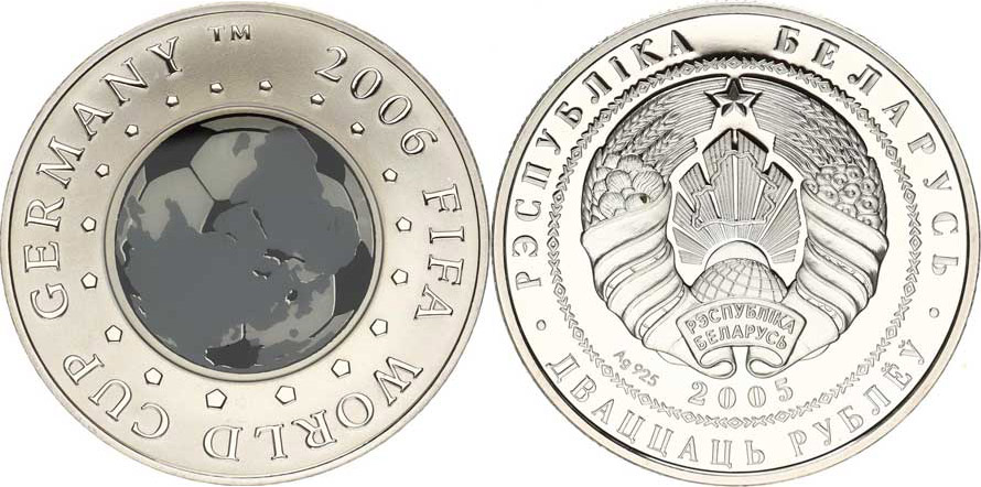 20 Rubl 2005 - MS ve fotbale 2006 KM 101 Ag 925 25,00 g multikolor kapsle