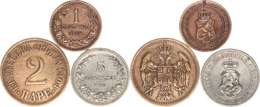 5 Stotinki 1913; +1 Stotinka 1912 Srbsko, Peter I. - 2 Pare 1904 3 ks