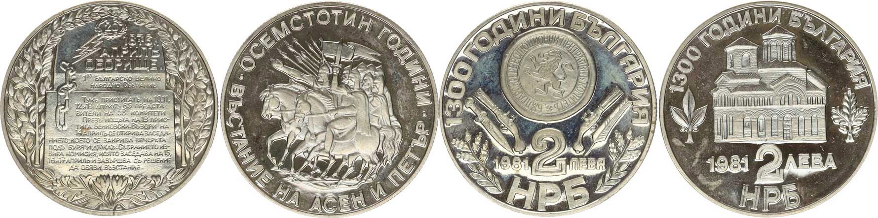 2 Leva 1981 - 1300 let Bulharska, Dubnové povstání 1876 KM 161 2 Leva 1981 - 1300 let Bulharska, Povstání v Assenu KM 162 2 ks