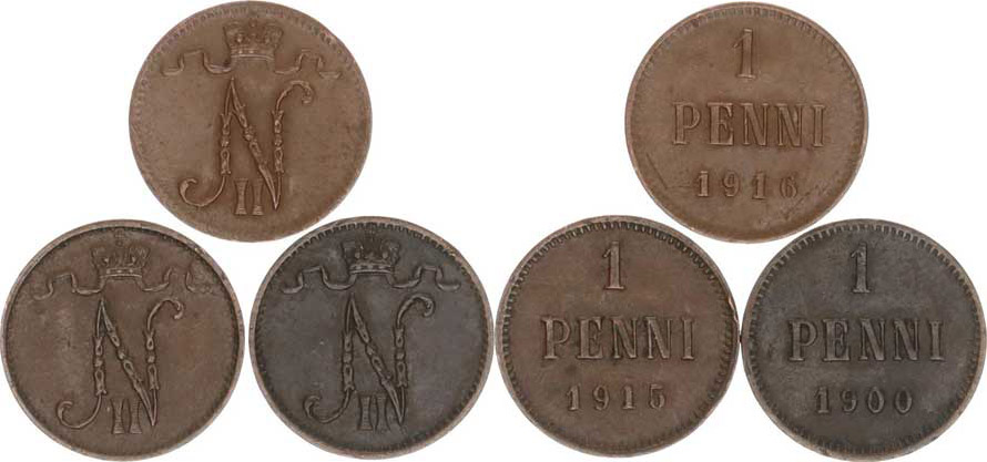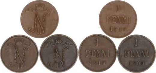 1 Penni 1900, 1915, 1916 KM 13 3 ks