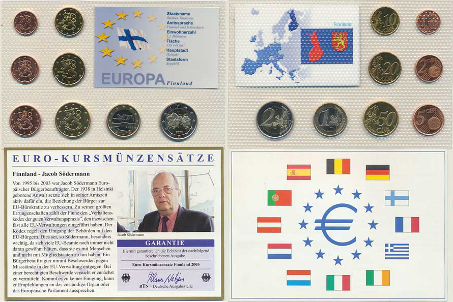 Ročníková sada EURO mincí 2005 (1, 2, 5, 10, 20, 50 Cents, 1, 2 E uro) 8 ks adjustace +certifikát BTN