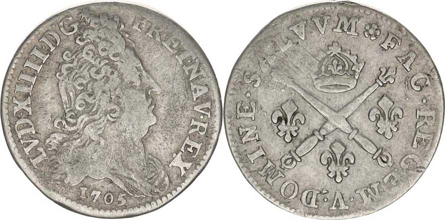 10 Sols - 1/8 Ecu 1705 A, Paříž 2,939 g KM 349.1 "R"