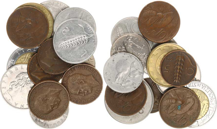 5 Centesimi 1921, 1923, +10 Centesimi 1920, 1921, 1924; +20 Cente simi 1919; +Republika - 1 Lira 1950; +2 Lire 1950; +5 Lire 1949; +10 Lire 1954; +50 Lire 1956; +200 Lire 1978; +500 Lire 1997 13 ks