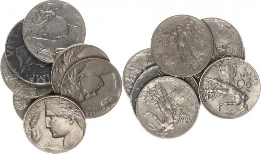 20 Centesimi 1909, 1910, 1912, 1914, 1920, 1921 50 Centesimi 1940 rok XVIII - nemagnet. 7 ks