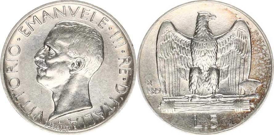 5 Lire 1927 R, na hraně **FERT** KM 67,2