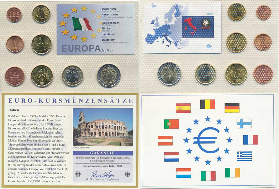 Ročníková sada EURO mincí 2002 (1, 2, 5, 10, 20, 50 Cents, 1, 2 E uro) 8 ks adjustace +certifikát BTN