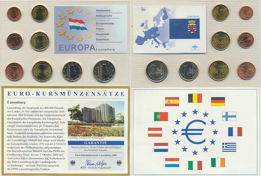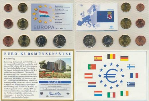 Ročníková sada EURO mincí 2002 (1, 2, 5, 10, 20, 50 Cents, 1, 2 E uro) 8 ks adjustace +certifikát BTN