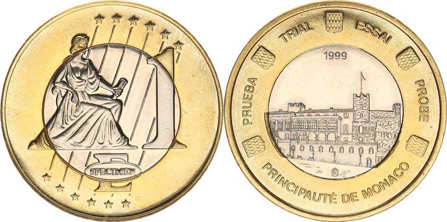 1 Euro 1999, "SPECIMEN" bimetal 32,6 mm N. 168399