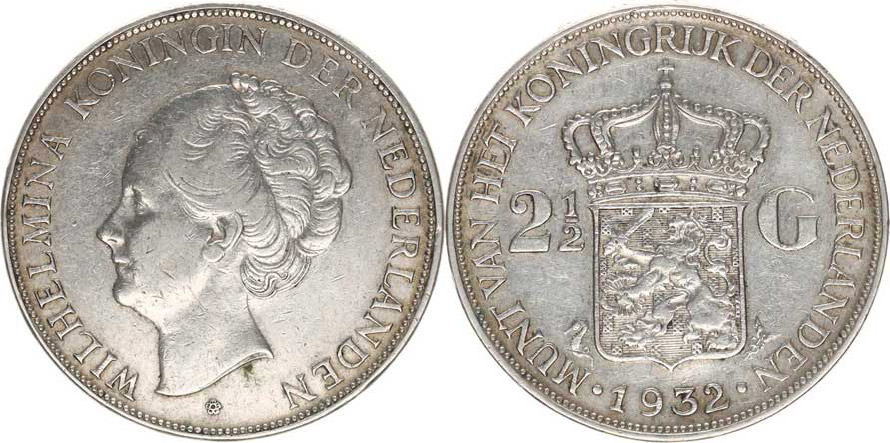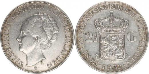 2 1/2 Gulden 1932 KM 165 Ag 720 25 g