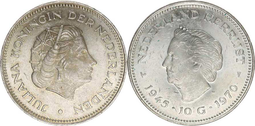 10 Gulden b.l. (1970) - 25. výročí osvobození KM 195 Ag 7 20 25,00 g_dr, rysky