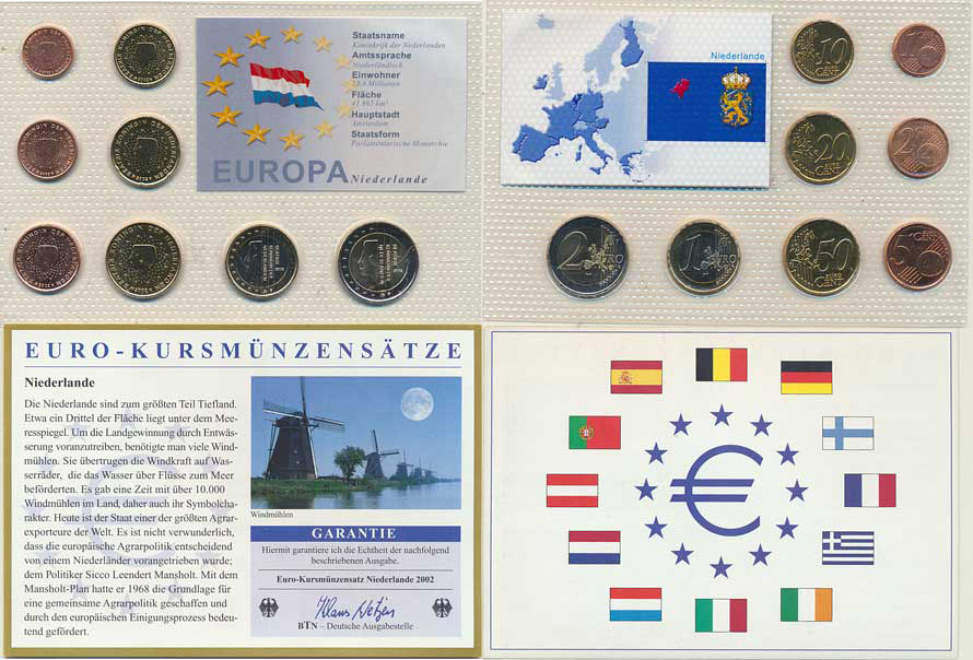 Ročníková sada EURO mincí 2002 (1, 2, 5, 10, 20, 50 Cents, 1, 2 E uro) 8 ks adjustace +certifikát BTN