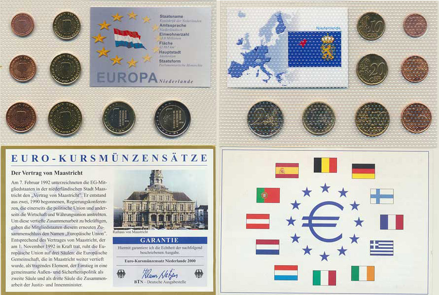 Ročníková sada EURO mincí 2002 (1, 2, 5, 10, 20, 50 Cents, 1, 2 E uro) 8 ks adjustace BTN_certifikát pro sadu 2000