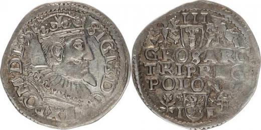 III groš 1595 IF, Wschova, Firlej, Lauffer - typ se zkrácenou dat ací za hlavou, opis. SIGI. 3. .. před datací křížek 2,028 g Iger W.95.4.a (R)