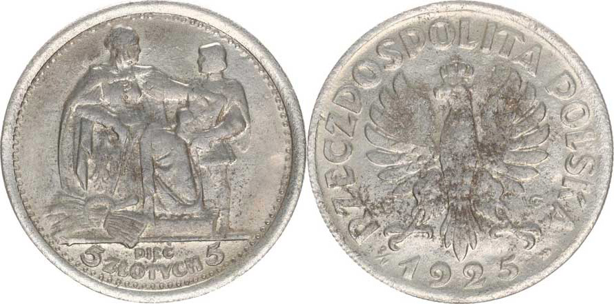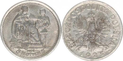 5 Zlotych 1925 3/V - SW-WG - Konstituce "KOPIE" bílý kov 17,696 g jako Parch. 140a; Y. 17