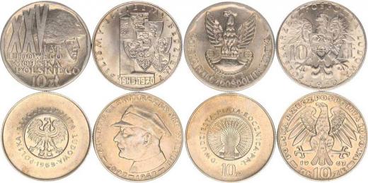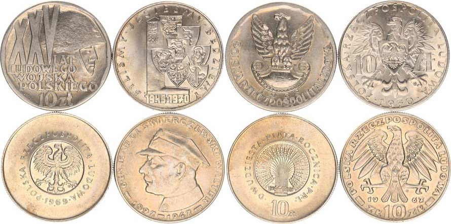 10 Zlotych 1967 MW - Swierczewski; +1968 - Polská armáda; +1969 - 25. výročí PLR; +1970 - Bylis my... Y. 58, 60, 61, 62 4 ks