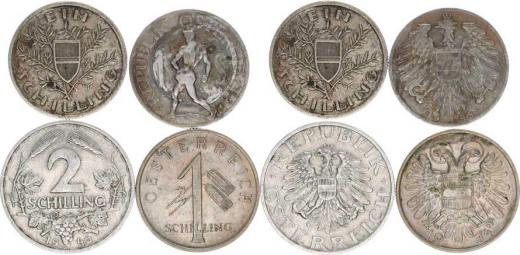 1 Schilling 1925, 1934, 1946; +2 Schiling 1946 4 ks