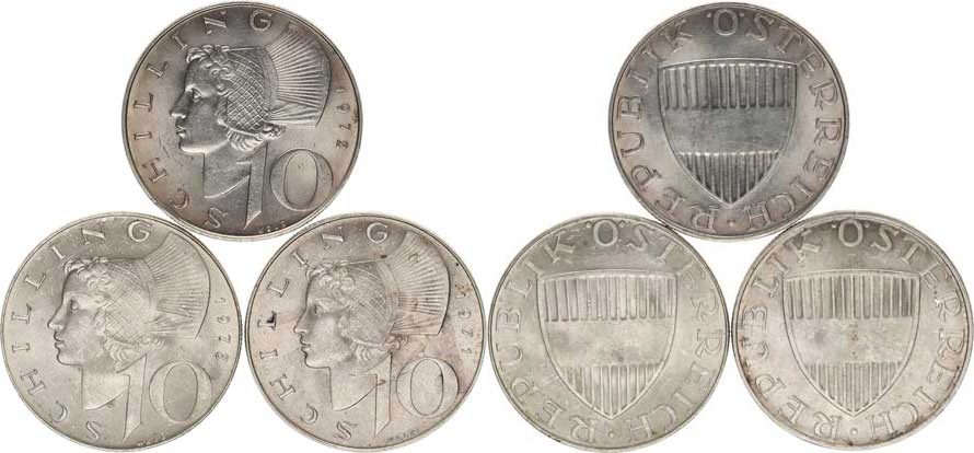 10 Schilling 1971, 1972, 1973 Ag 3 ks