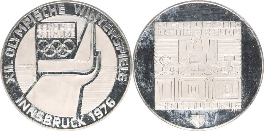 100 Schilling 1974 - OH Insbruck 1976, můstek minc. Vídeň KM 2929 kapsle