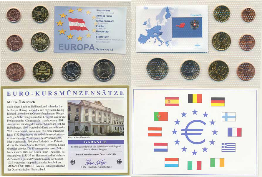 Ročníková sada EURO mincí 2004 (1, 2, 5, 10, 20, 50 Cents, 1, 2 E uro) 8 ks adjustace +certifikát BTN