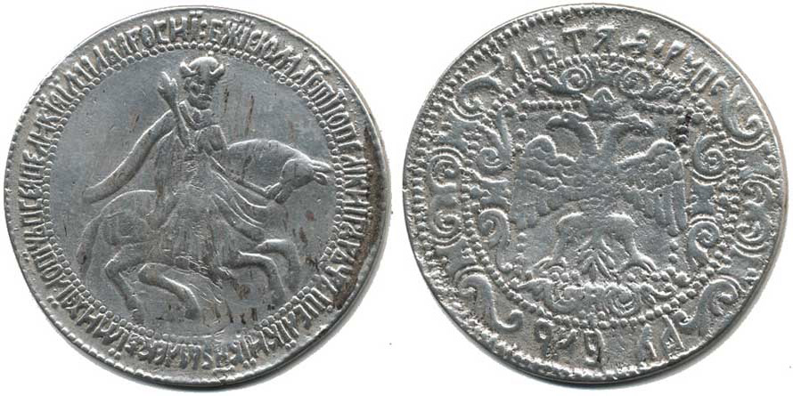 Rubl 1654 "KOPIE" Spasskij str. 127/ č. 9; Petro v tab. 11/ č.115 imitace Ag 27,115 g